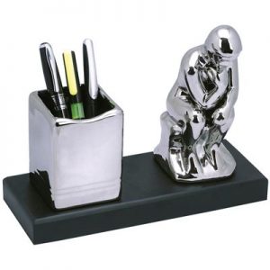 מעמד שולחני " האדם החושב " עם מתקן לעטים