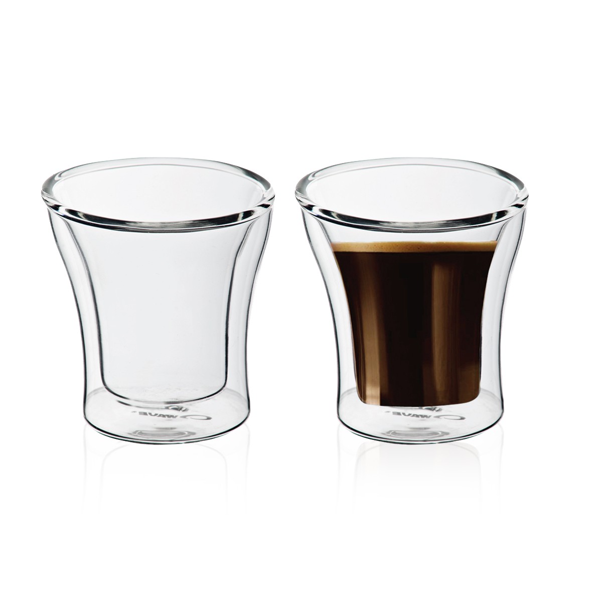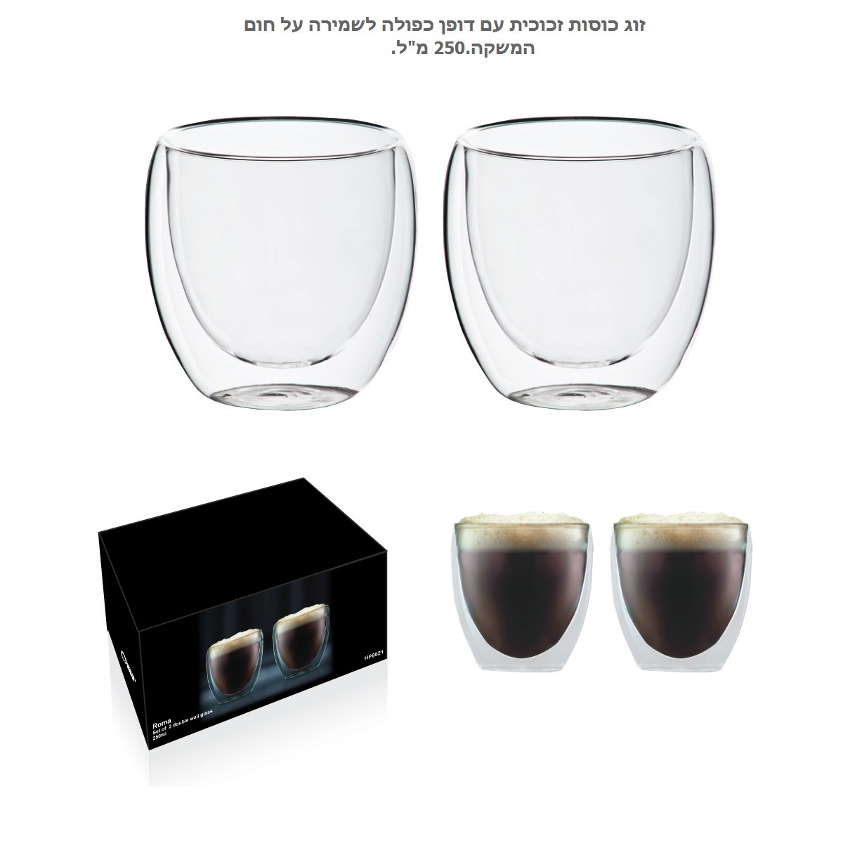 וג כוסות קפה עם דופן זכוכית כפולה למניעת כוויה.