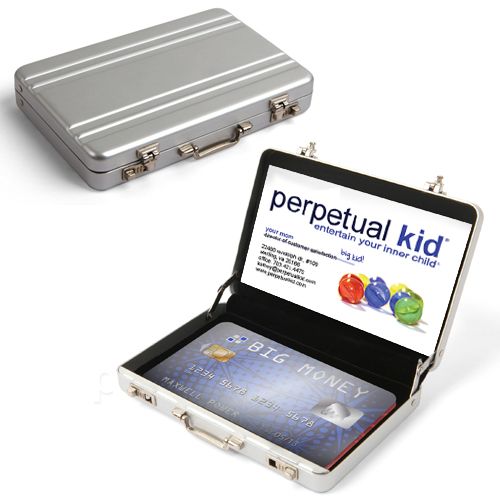אנשי עסקים הטו את אוזניכם ללהיט החדש אשר יוצר במיוחד עבורכם – מזוודת כרטיסי הביקור. באמצעות מוצר זה תוכלו לאחסן את כרטיסי הביקור שלכם, ואת אלו שתקבלו, במזוודה קטנת ממדים, אשר תגן עליהם ותשמור אותם באופן מסודר ונח לשימוש. גודלה הקטן ומשקלה הקל מאפשרים להתנייד עמה בקלות ובנוחות, על מנת שבכל סיטואציה שבה תתקל תוכל לשלוף את הכרטיס במיידי. עיצובה המדליק כמזוודת מזומנים, כמו בסרטי האקשן, מעורר בה עניין רב ויאפשר משפט פתיחה שישבור את הקרח בתחילת שיחת העסקים הרשמית והמלחיצה. תוכנה של המזוודה מכוסה בד קטיפתי שחור אשר על גביו כיס שקוף – אשר מקנה לכתוב על הכרטיס נראות מובלטת. אז אם אתם רוצים לקדם את העסק בצורה ייחודית ומדליקה, בעזרת מוודת כרטיסי הביקור לא תצליחו לנשות מרוב תעסוקה!!!