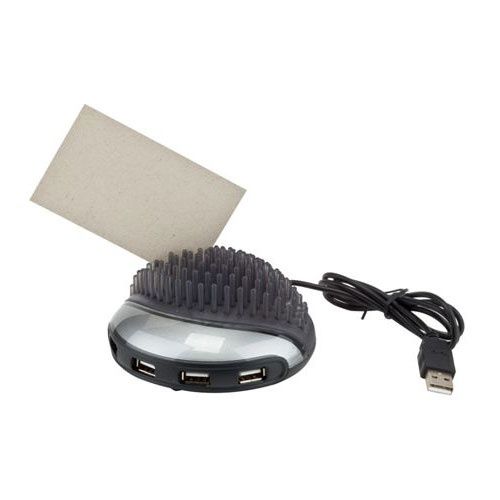 מעמד לכרטיסי ביקור ייחודי משולב ב 4 מפצלי USB + תאורה מתחלפת. מיועד לשולחן העבודה וכולל מתקן לכרטיסי ביקור , הודעות