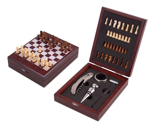 • ערכה ניידת למשחק שחמט + אביזרי יין.