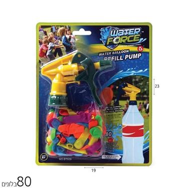 שפריצר בלוני מים 80 בלונים, רקבות בלוני מים הם דבר מדליק ומהנה לכל הצדדים , אבל אבל למלא את הבלון במים מהברז זה סיוט בפני עצמו ודורש  סבלנות רבה. תשכחו מהטרחה ותהפכו זאת  לתענוג של שמחה טהורה של קרבות בלון מים. עם Pumponator  תחנת שאיבה המתחברת לכל בקבוק. אז עכשיו כל מה שנותר לכם זה למלא את הבלונים במספר לחיצות קצרות של המשאבה ויש לכם תחמושת מספיקה.